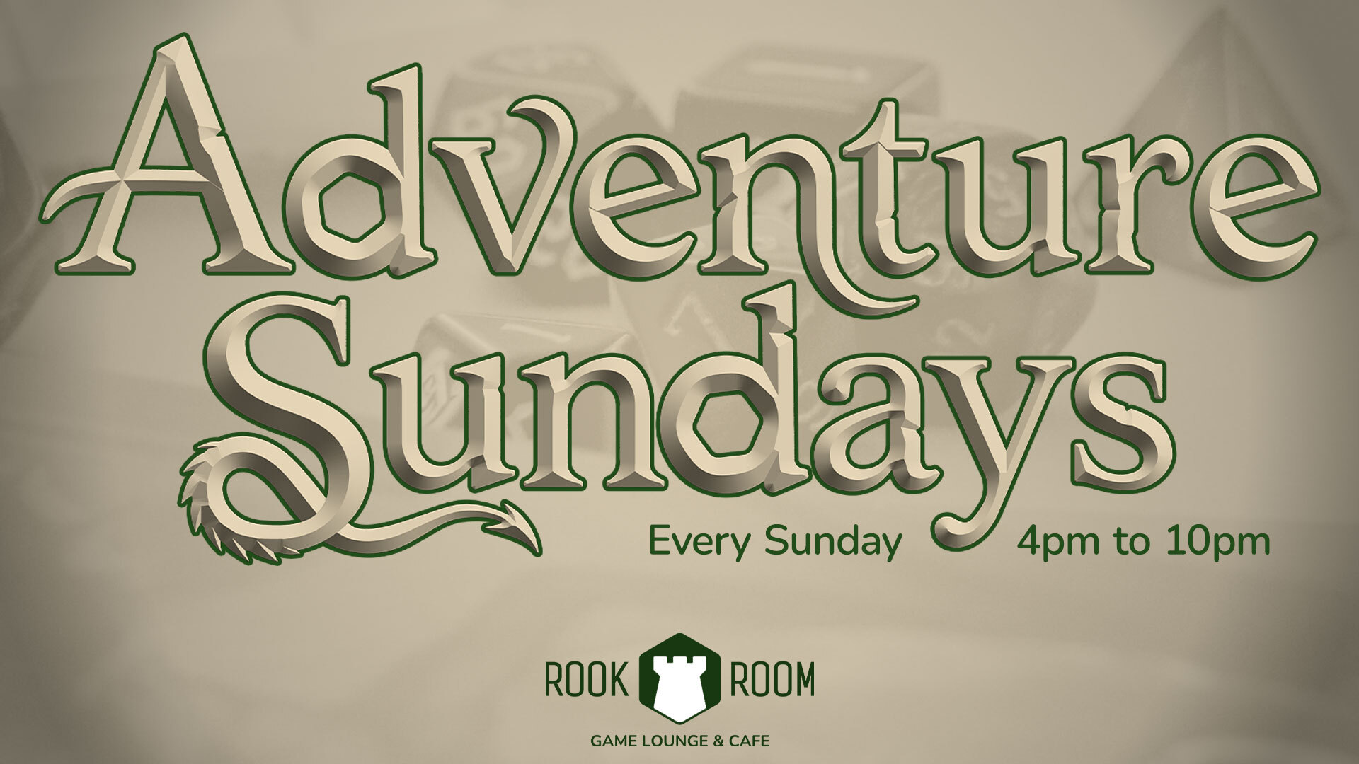 Every Sunday from 5-10PM at Rook Room Game Lounge & Cafe for Adventure Sundays to experience open play for your favorite TTRPG and themed drinks with in-game benefits!
